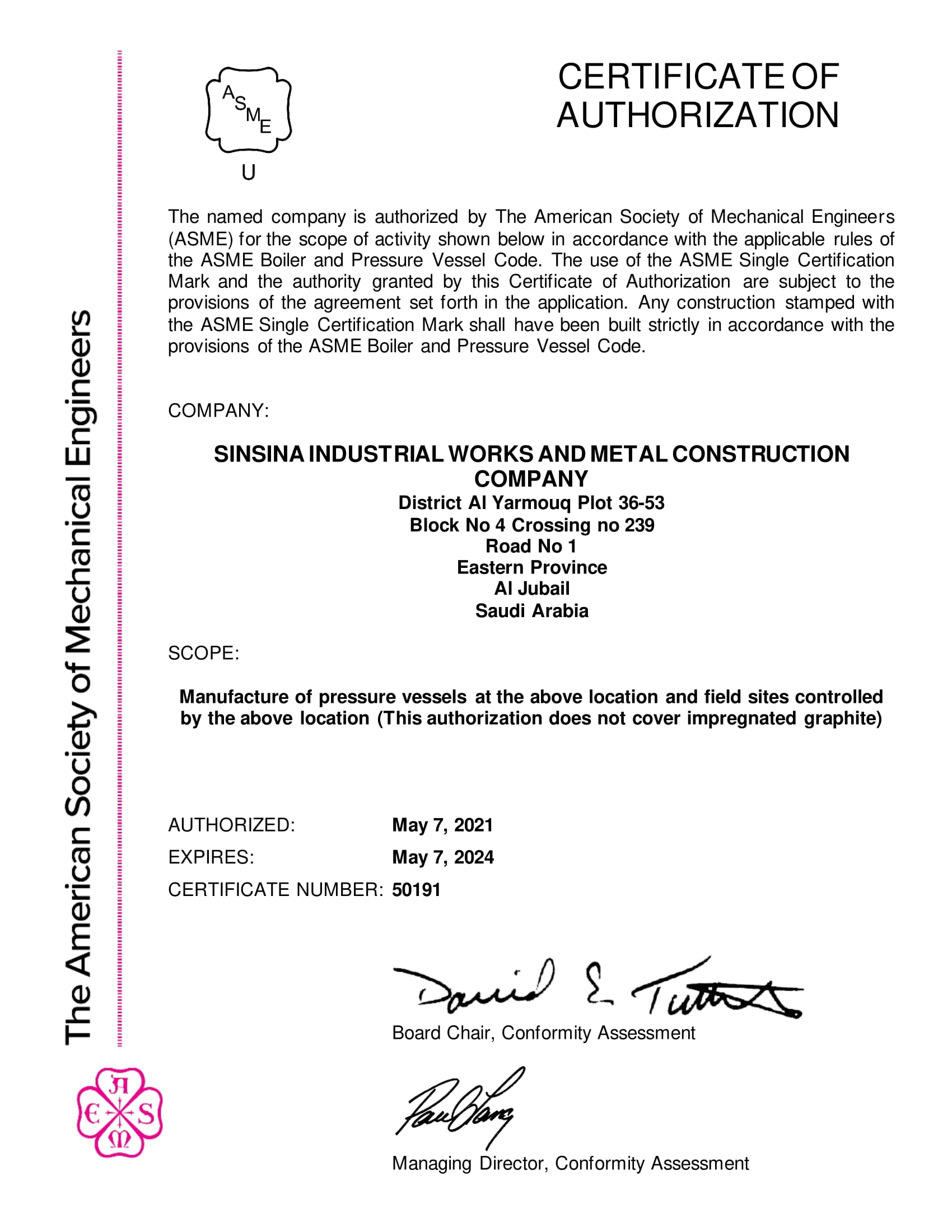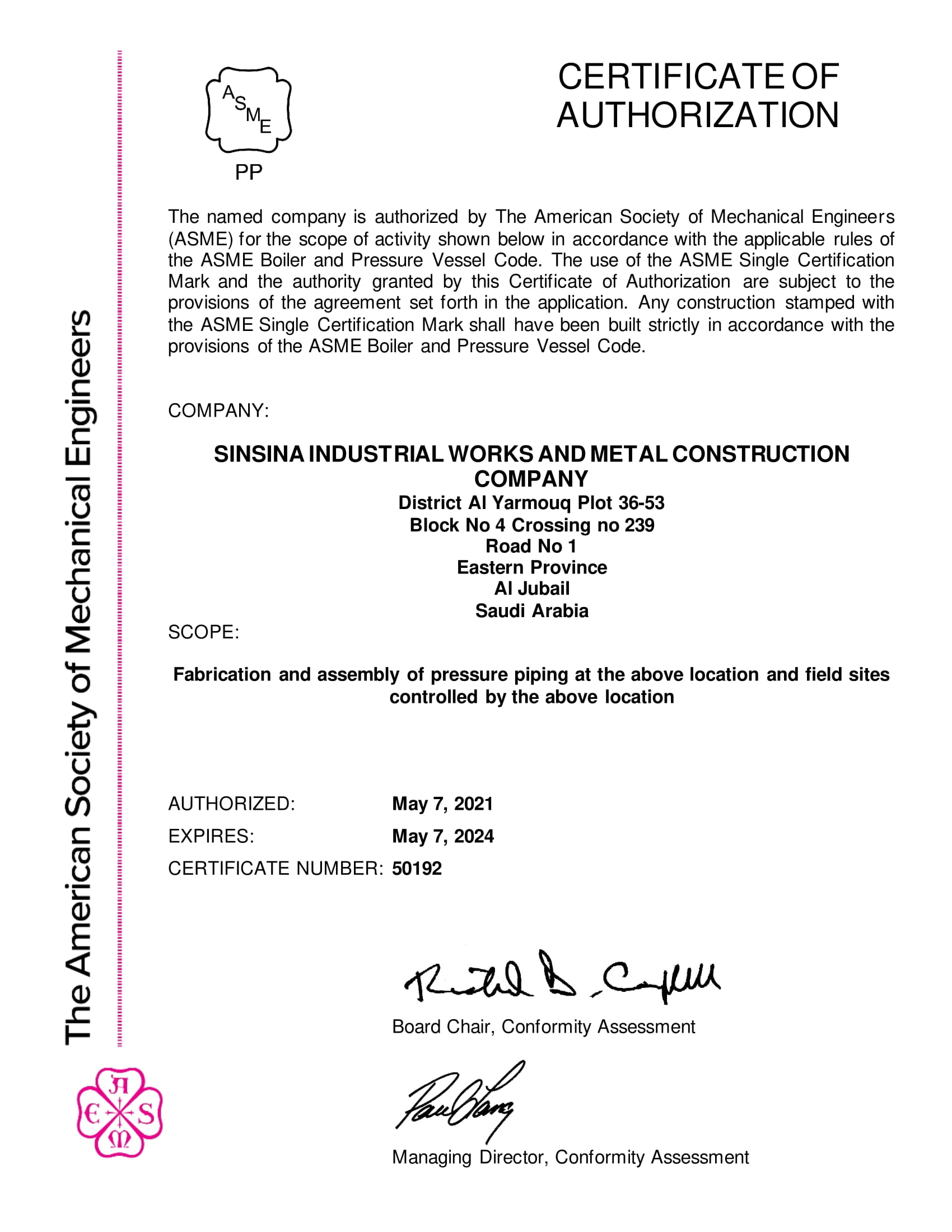 Sinsina Industrial Works strives for providing the highest quality of steel structure and process equipment, products, services and value to our customers to be a leading company of the oil and gas industry. We aim to contribute to building the future of the Kingdom of Saudi Arabia, adapting the 2030 National Vision. While continuing to be an outstanding manufacturing company and a true benefit to the communities and markets in which we operate and serve.